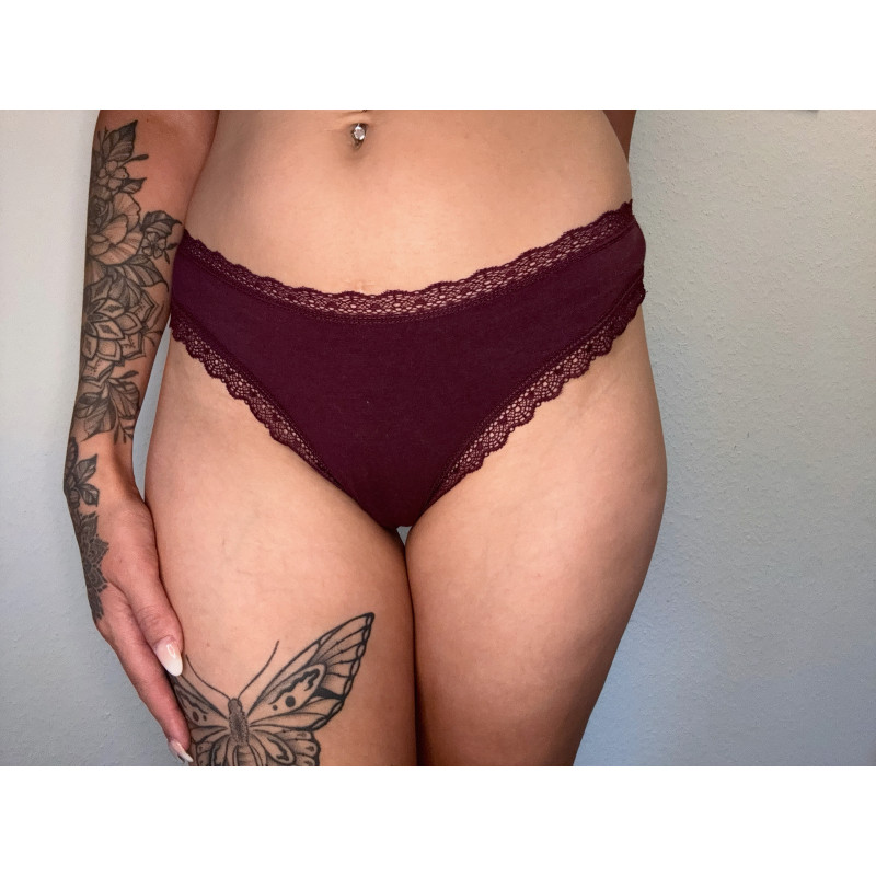 Ich trage diesen süßen Baumwolstring mit Spitze 1-2 Tage für dich, so dass er schöne Spuren bekommt.